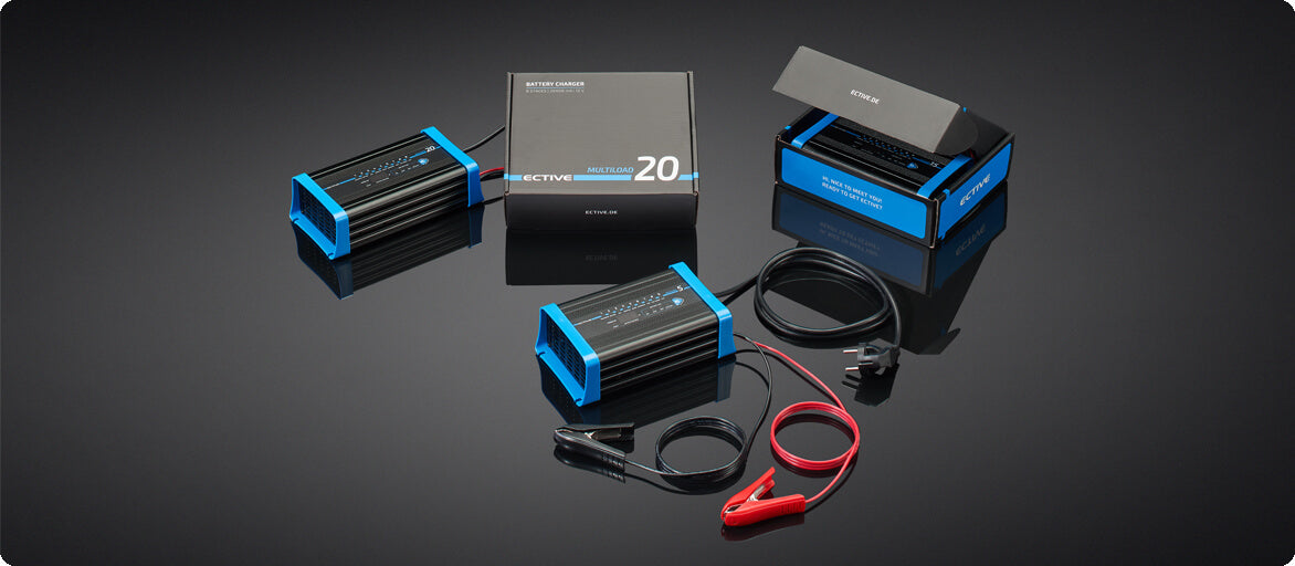 Ladegeräte von ECTIVE versorgen deine Batterien schnell und schonend mit frischer Energie und sorgen dafür, dass du stets für alle Vorhaben gerüstet bist. Die robuste Proload-Serie ist ein absolutes Allround-Talent und immer eine gute Wahl. Die Multiload-Serie punktet durch kompaktes Design und vergleichsweise geringes Gewicht. Die Muliload LFP-Serie ist speziell für Lithium-Batterien konzipiert.