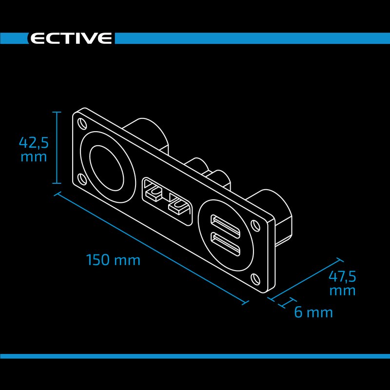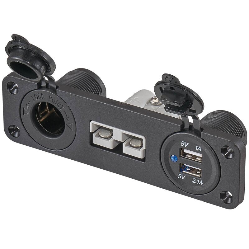Console d'installation pour voiture avec connexion Anderson Prise de tension de bord 50A 12/24V et 2x ports USB