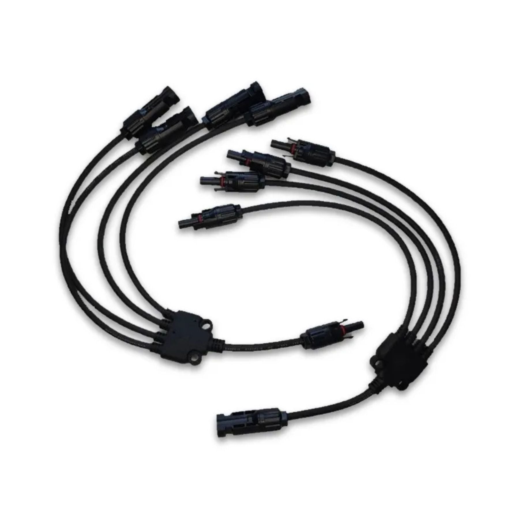 Questi adattatori a Y flessibili e di alta qualità di Ultimatron France consentono il collegamento in parallelo semplice e sicuro dei moduli solari. Da 1 a 4 derivazioni, sono ideali per impianti fotovoltaici modulari in cui è necessario collegare in modo efficiente più moduli solari.