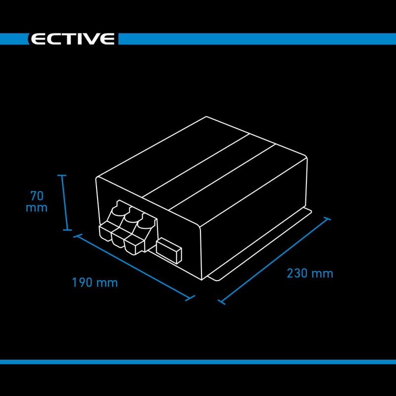 Mit Hilfe einer präzisen Ladekennlinie erhöht und senkt der ECTIVE Battery Booster automatisch die Spannung auf die erforderlichen Werte, um deine Batterie optimal zu laden. Darüberhinaus kompensiert der Ladebooster Leitungsverluste und starke Spannungsschwankungen des Generators, wie sie in Fahrzeugen häufig auftreten. 12-Volt-Verbraucher in deinem Fahrzeug werden dabei ebenfalls vor Spannungsschwankungen und Überspannung geschützt.