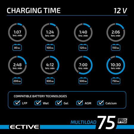 - Das Multiload PRO 75 mit bis zu 75 A Ladeleistung bei 2,65 Kg