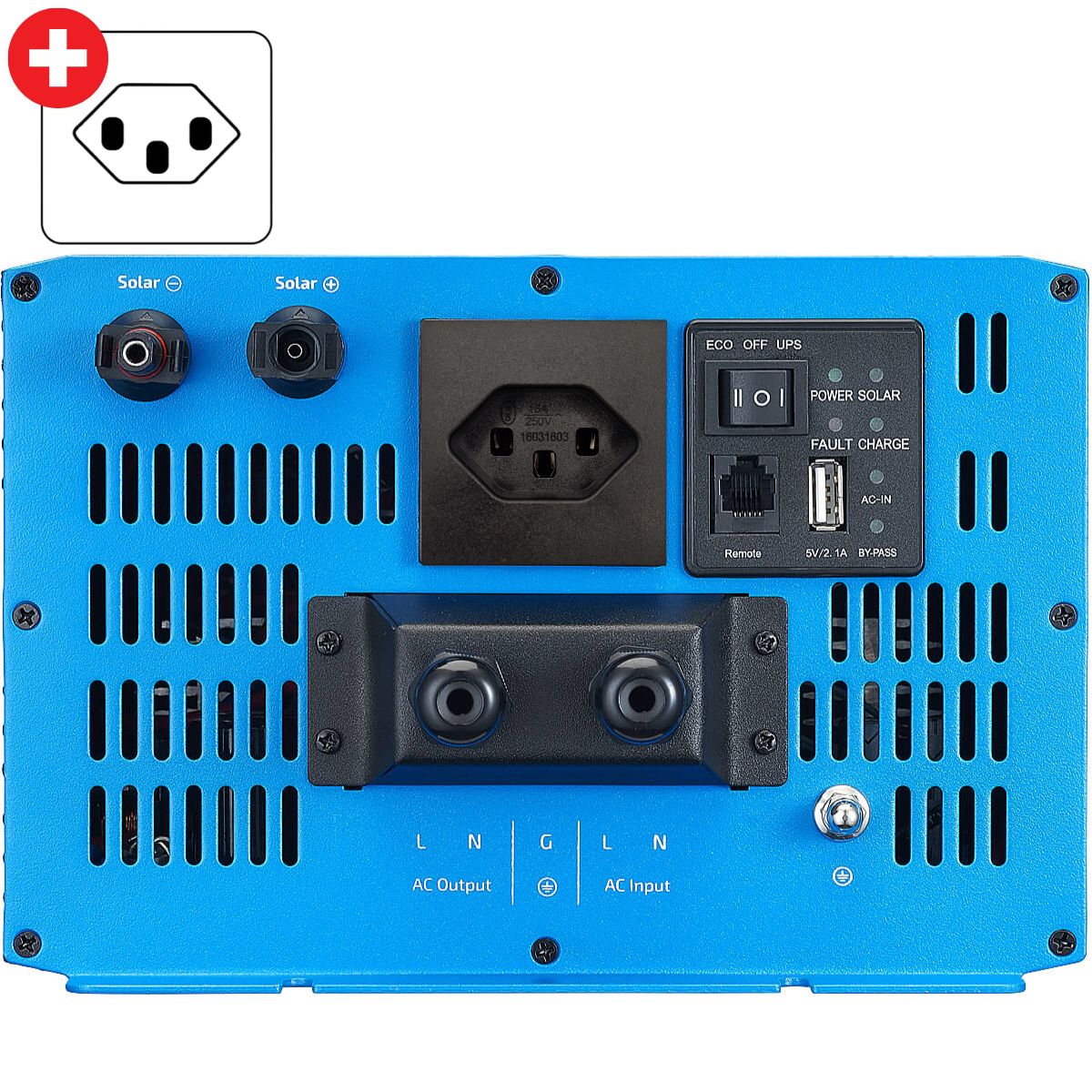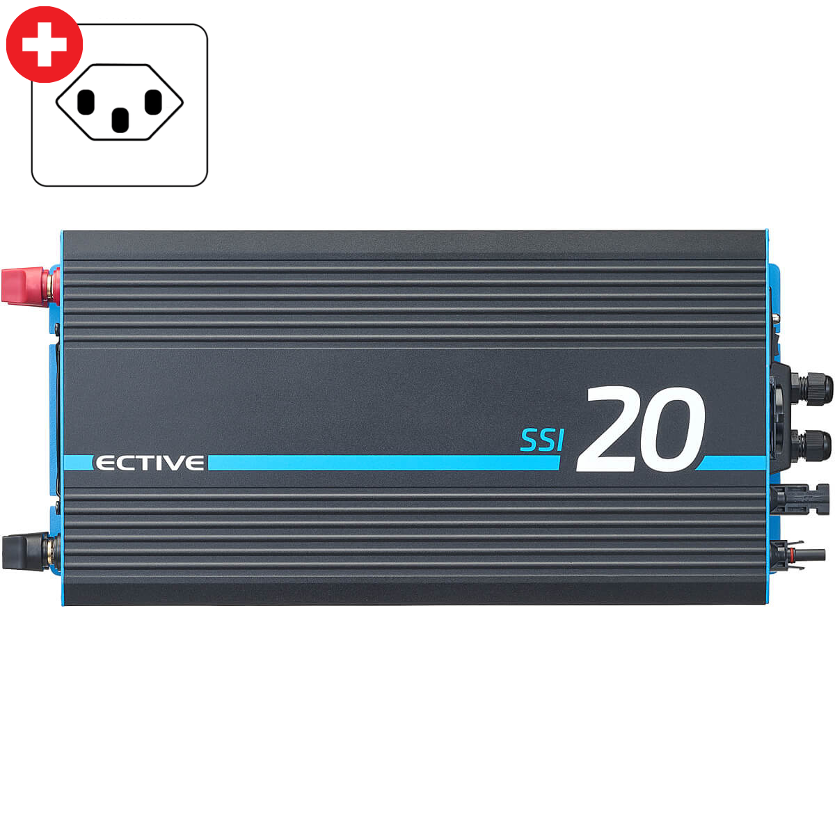 SSI 20 Sinus-Wechselrichter 2000W 12V mit Netzvorrang, Ladegerät & MPPT Laderegler (CH-Stecker)